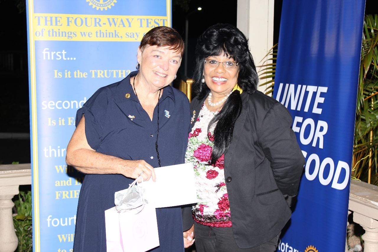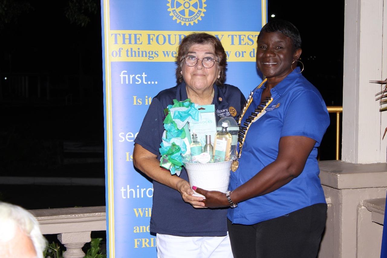 Towards the end of the meeting Gail (the wife of Wayne W.) was given a token of appreciation from both President Esmeralde and Immediate Past President Yvette!